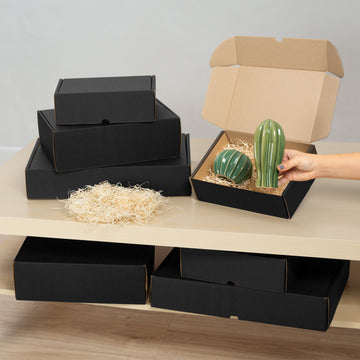 Nuestras cajas negras son ideales para cualquier tienda ecommerce, ya que están pensadas especialmente para envíos postales. El cartón kraft negro corrugado de tres capas de máxima calidad dota a cada caja postal de una gran firmeza, resistencia y seguridad. Es por eso que todos tus productos llegarán a tus clientes en perfecto estado y condiciones, gracias a que han quedado completamente protegidos por la caja durante el proceso de envío.