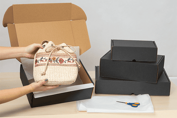 Cajas de cartón negras para envíos pensadas para tiendas ecommerce